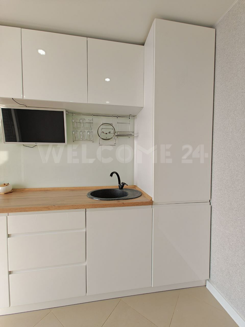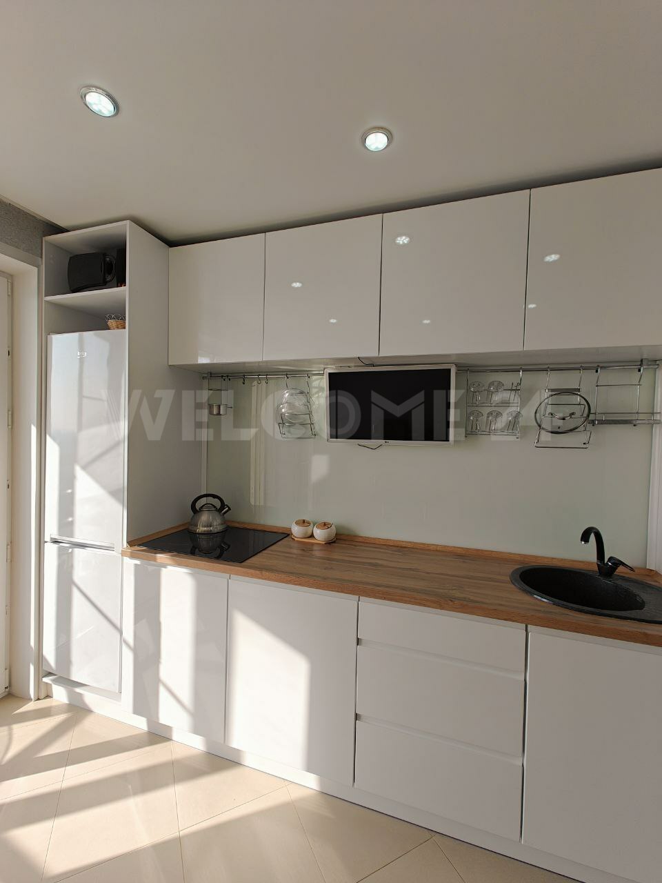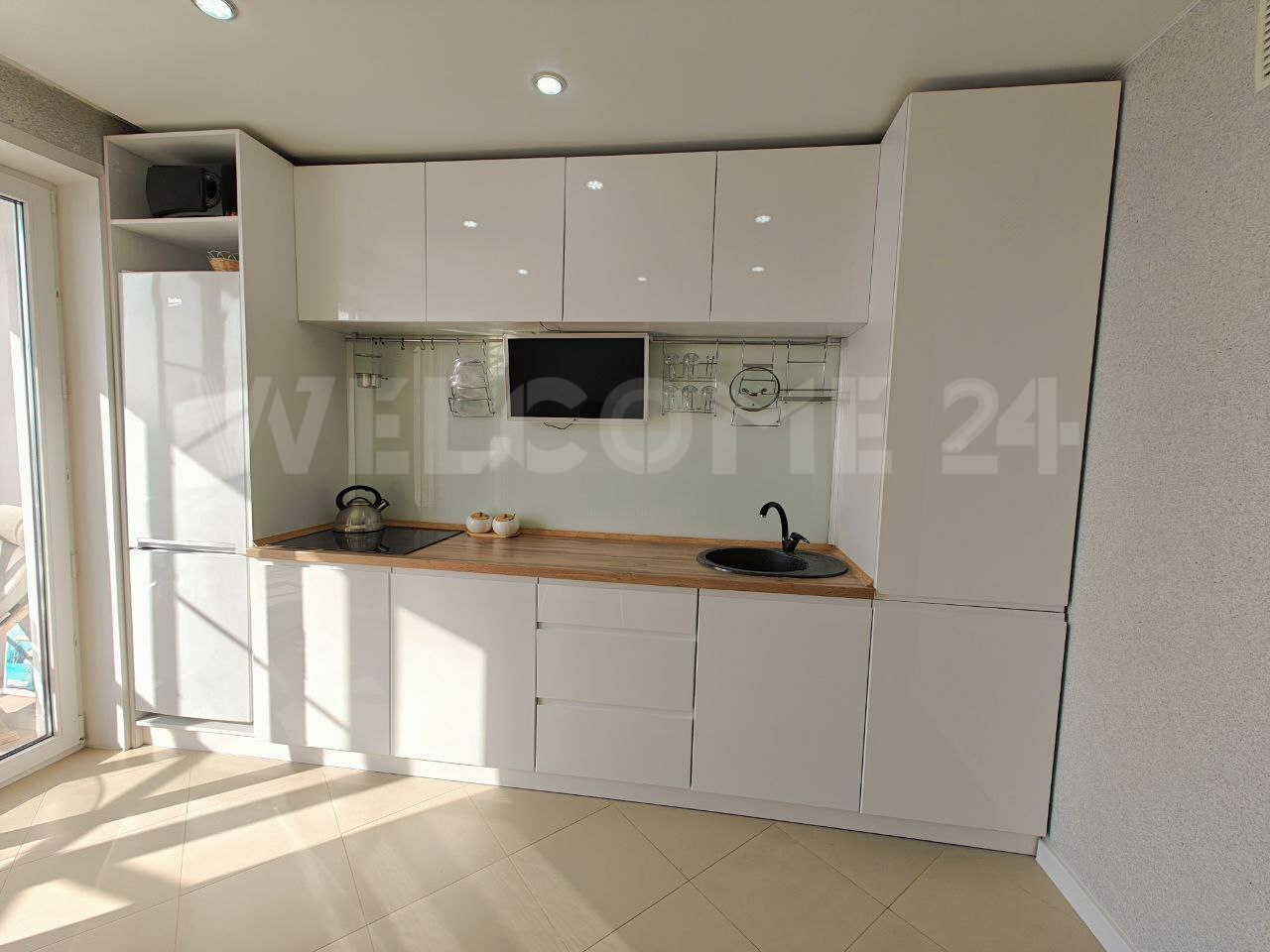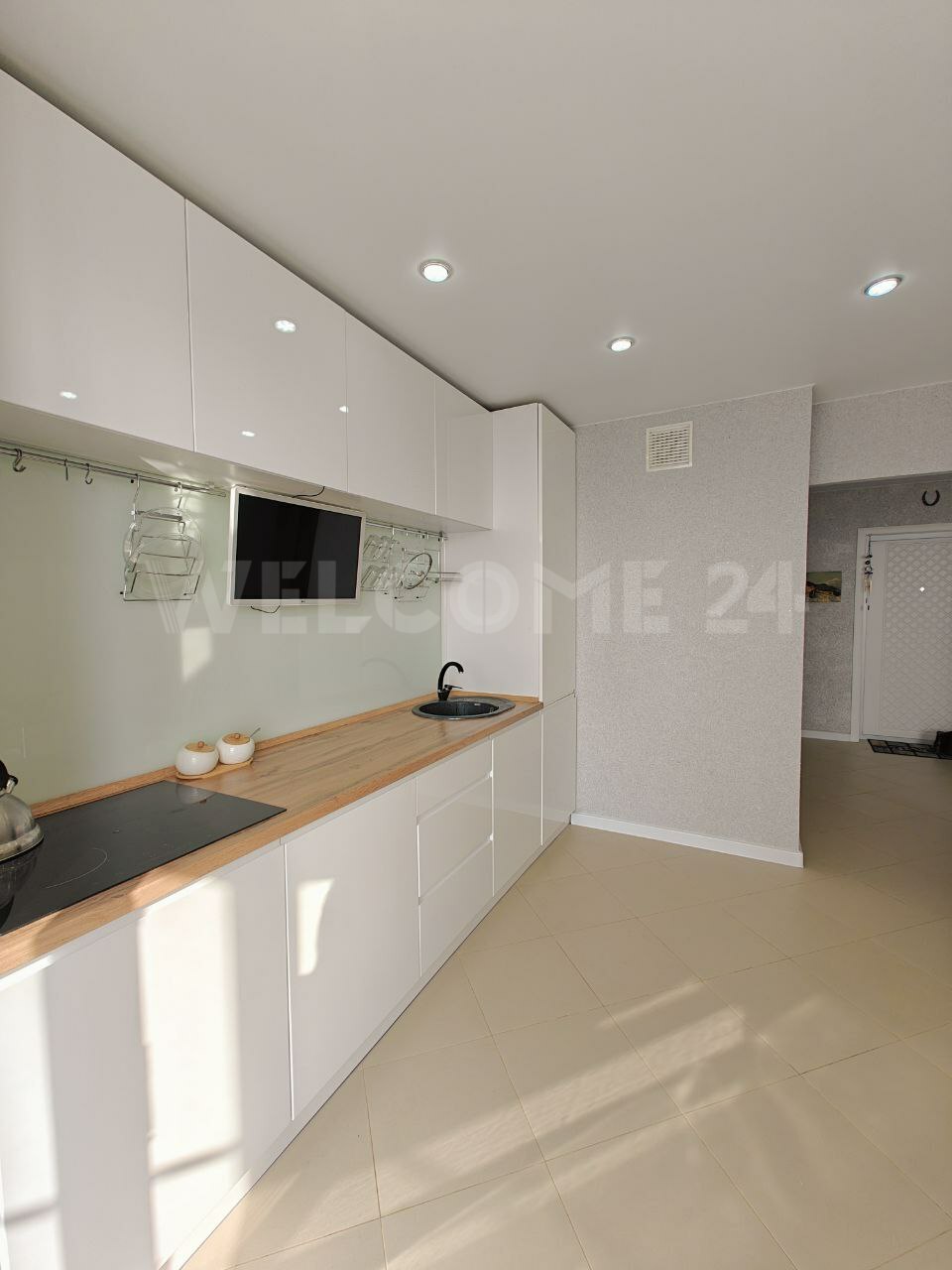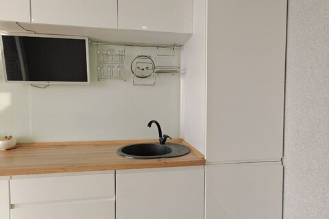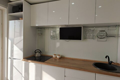 Ремонт делали из дорогих качественных материалов: на полу уложен ламинат 33 класса, керамогранит. В предложение входит кухонный гарнитур, варочная панель, обеденный стол и стулья, двуспальная кровать, гардеробная, кресло качалка и журнальный столик.