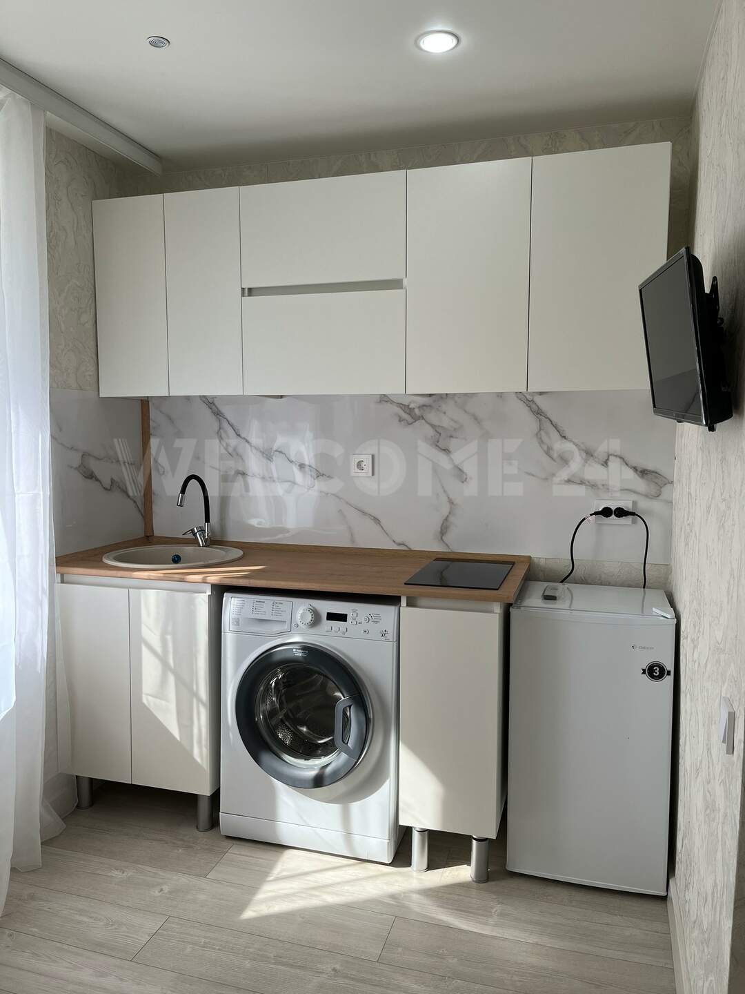 Продается студия с дизайнерским ремонтом,. Светлая и солнечная комната. Сделан качественный капитальный ремонт. Новая медная проводка, натяжные потолки, пластик новое панорамное окно, метал. дверь, новая кухня, встроеная электроплита Dexp, вытяжка, холодильник, стиральная машина.
