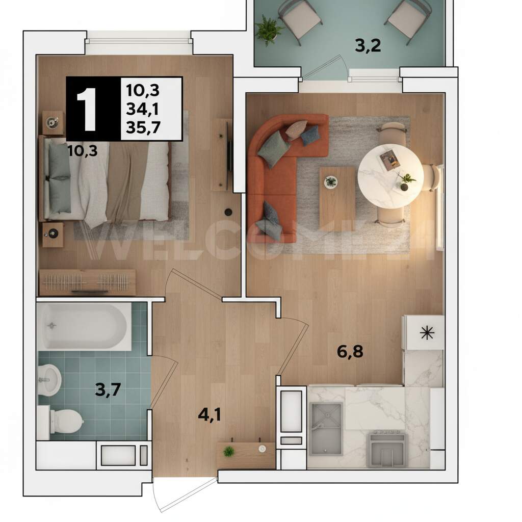 34 м²