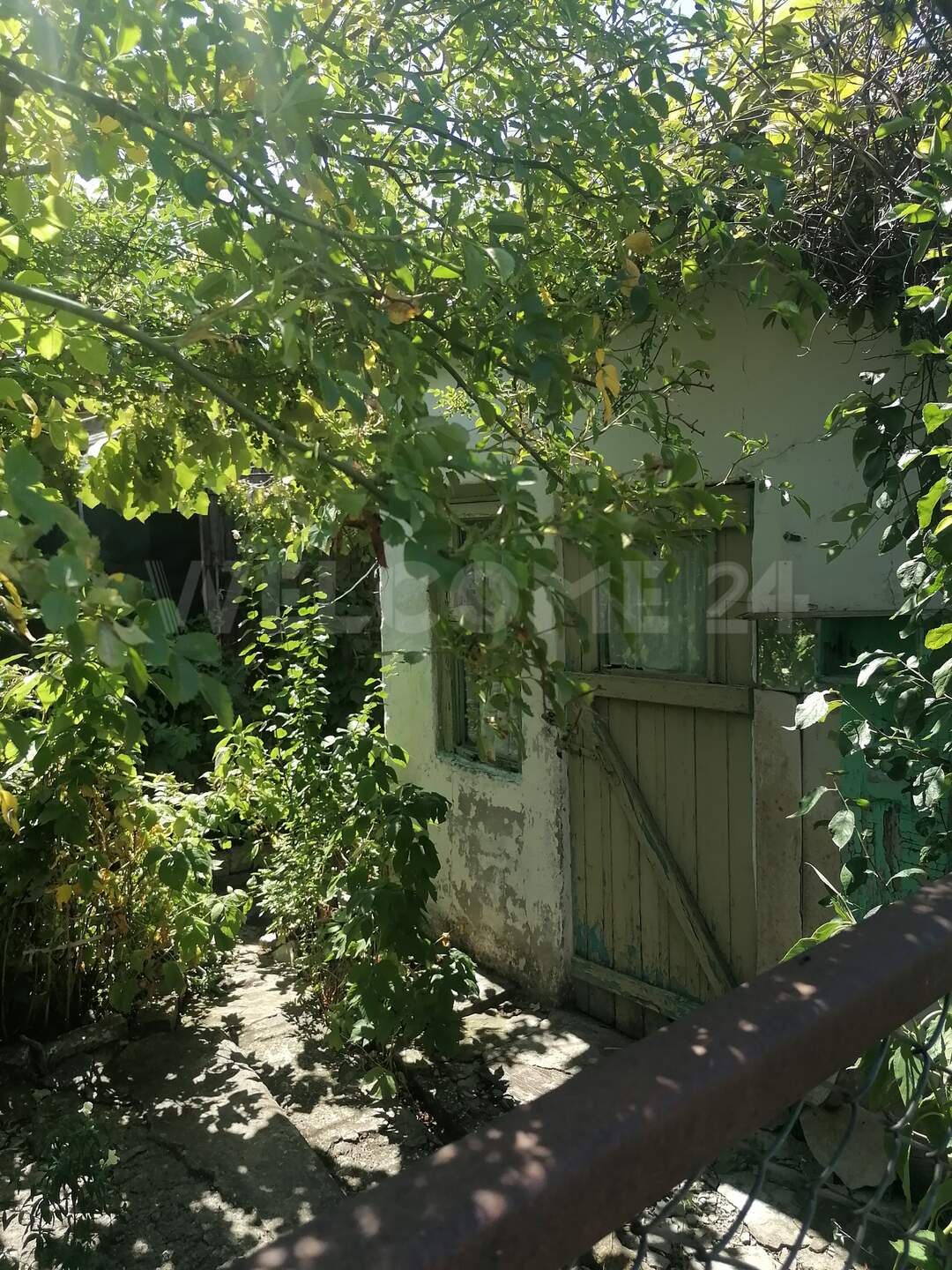 2-комнатная, площадью 34 м.кв., участок земли 2,5 соток, есть все коммуникации.