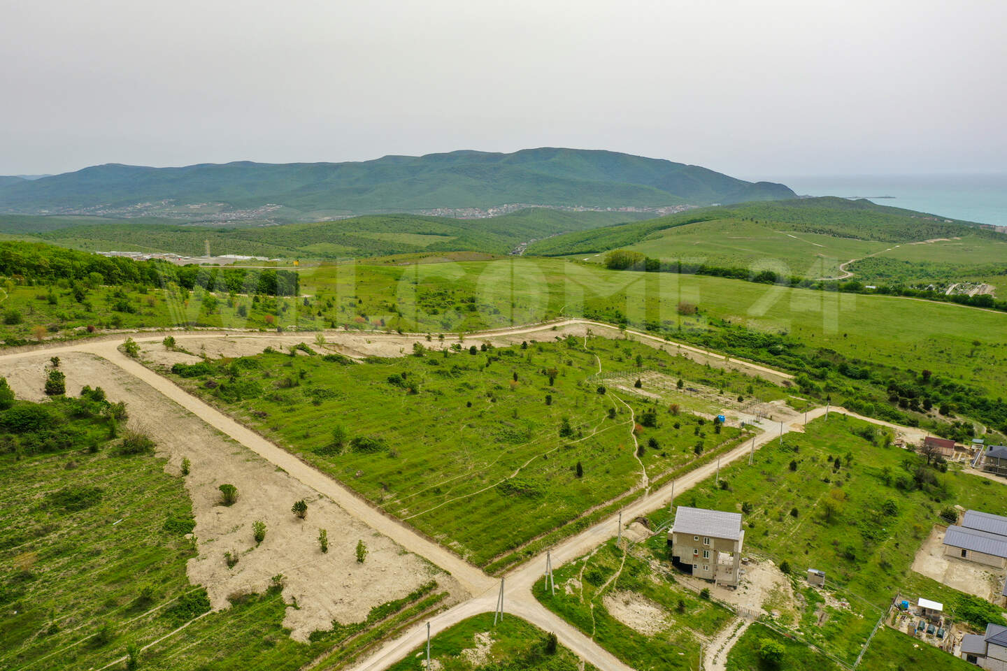 С участка открываться панорамный вид на предгорье Кавказских гор, виноградки и винодельню Скалистый берег.
