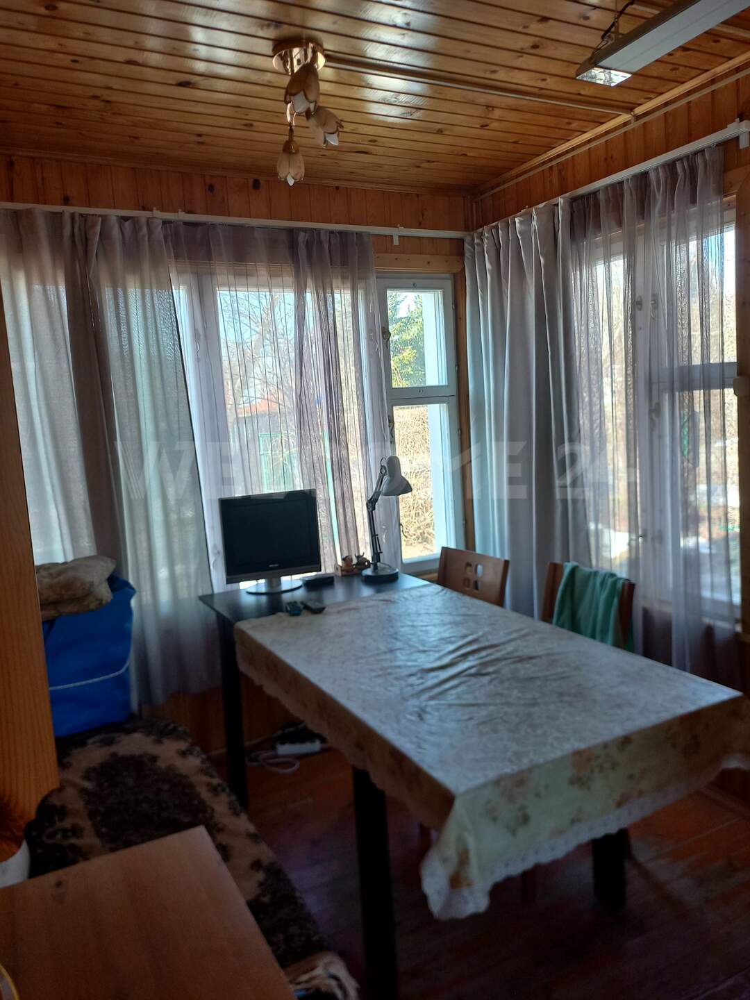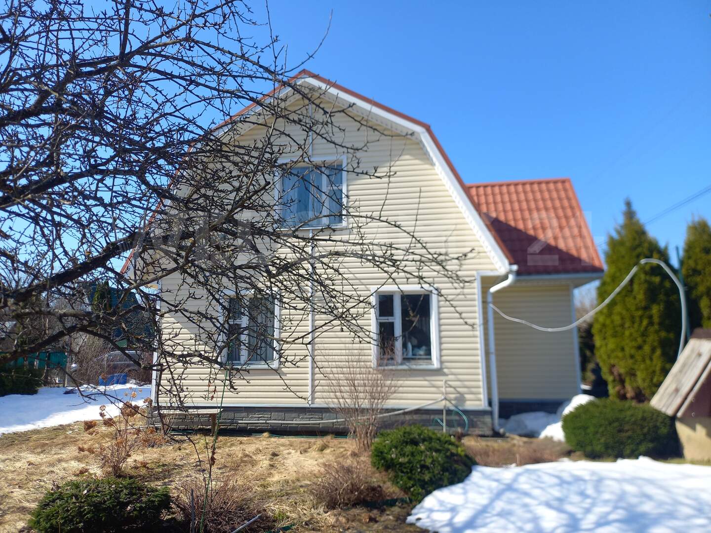 Дом сухой, вложений не требует. Стены брус 150, отделан вагонкой и сайдингом. Фундамент свайно-ростверковый, крыша металлочерепица.