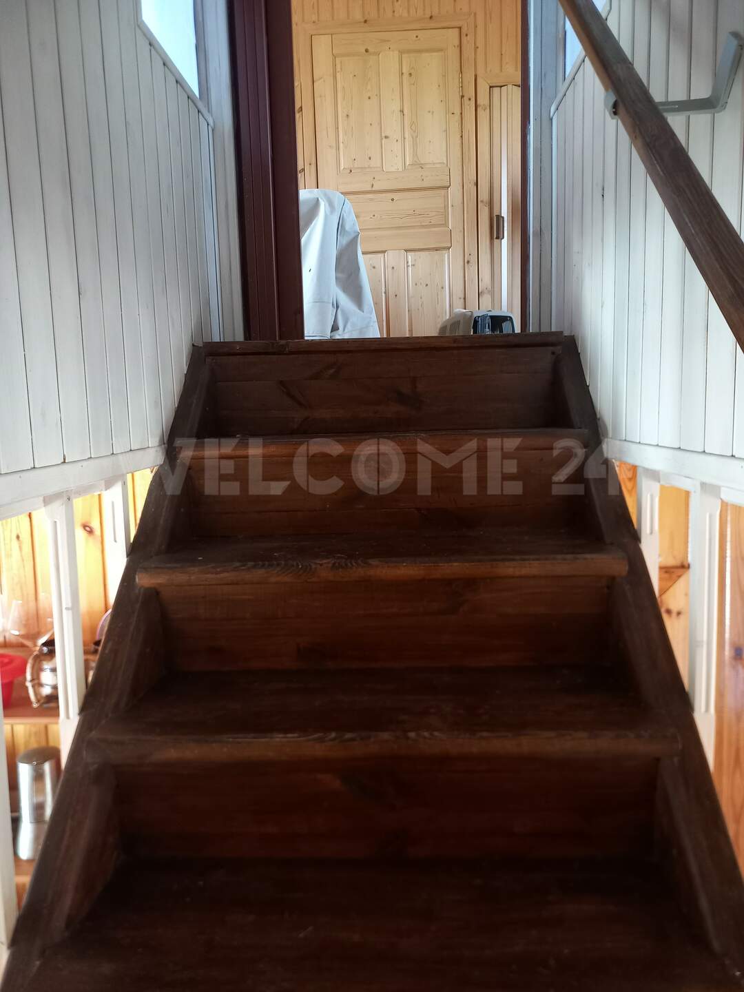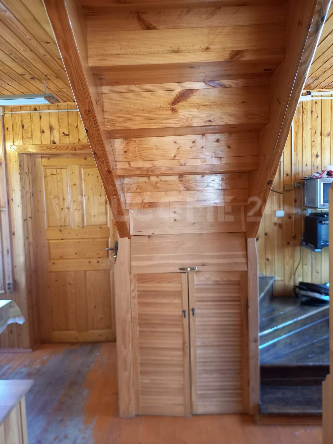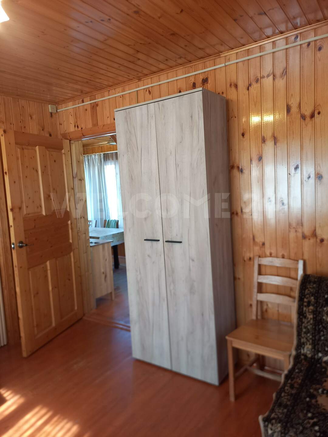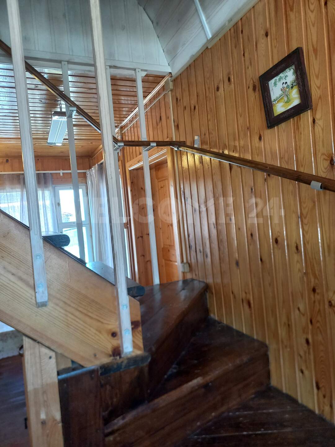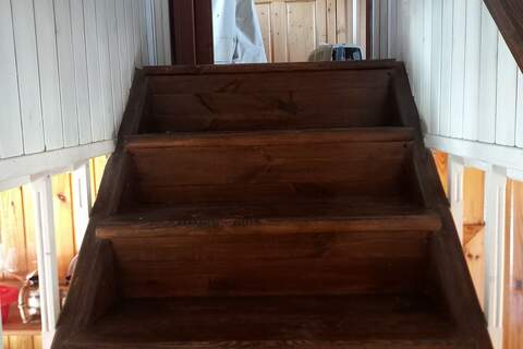 Первый этаж: прихожая, кухня, две комнаты. Второй этаж просторная комната.