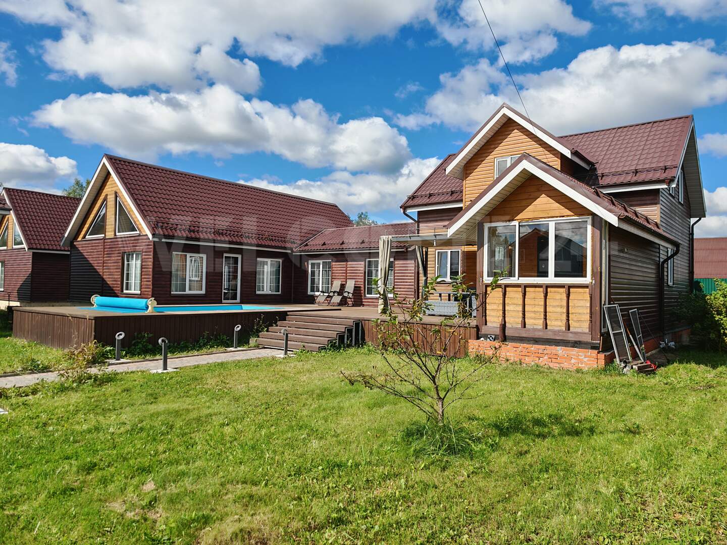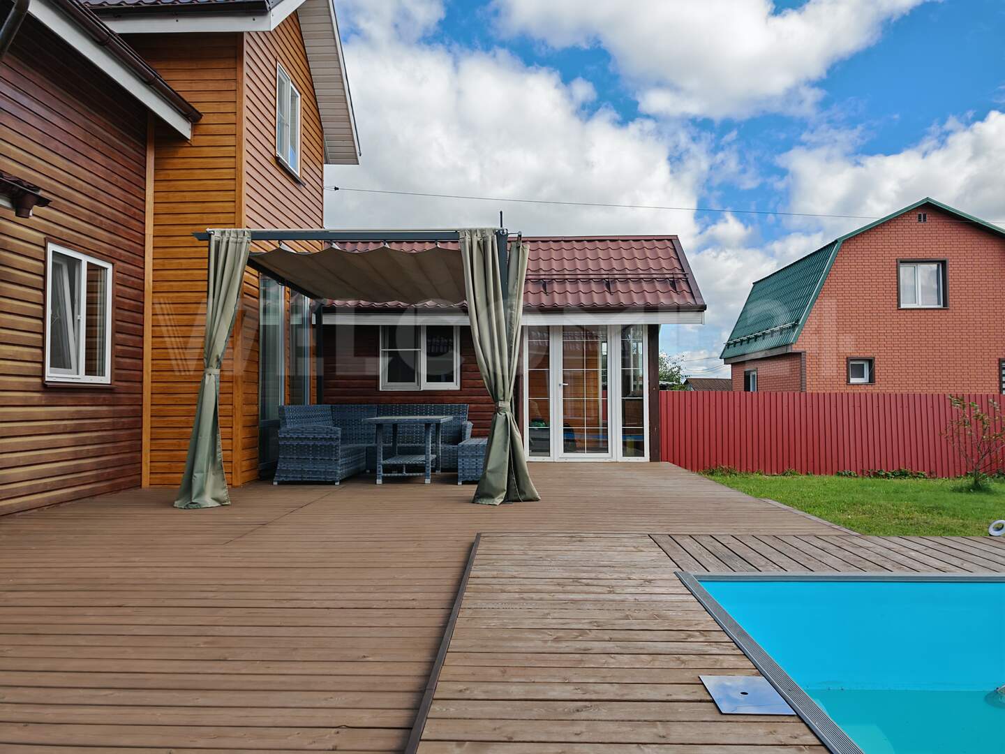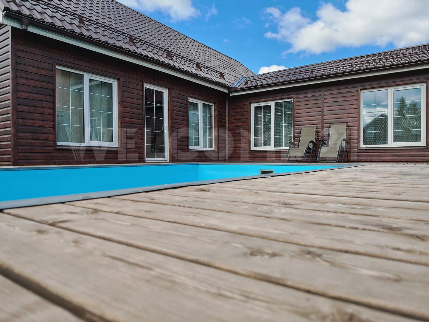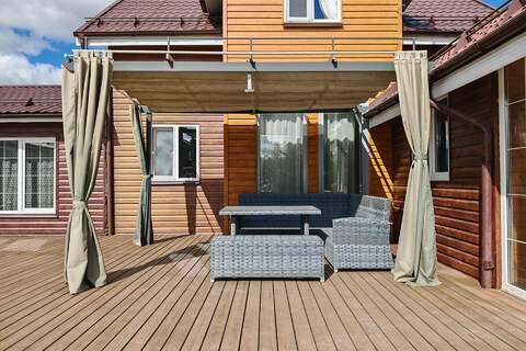 ➖ Просторная веранда из лиственницы с открытым бассейном и свей необходимой инженерией.