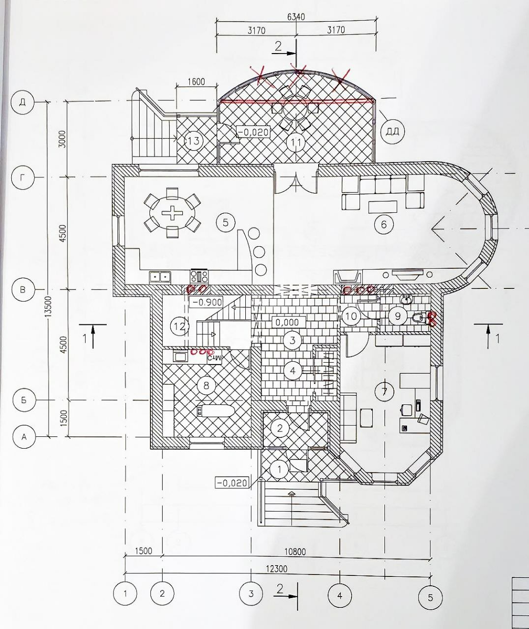 Цокольный этаж на площадь всего дома. Там можно оборудовать пространство на свое усмотрение: установить сауну, хамам, тренажерный зал и даже бассейн.