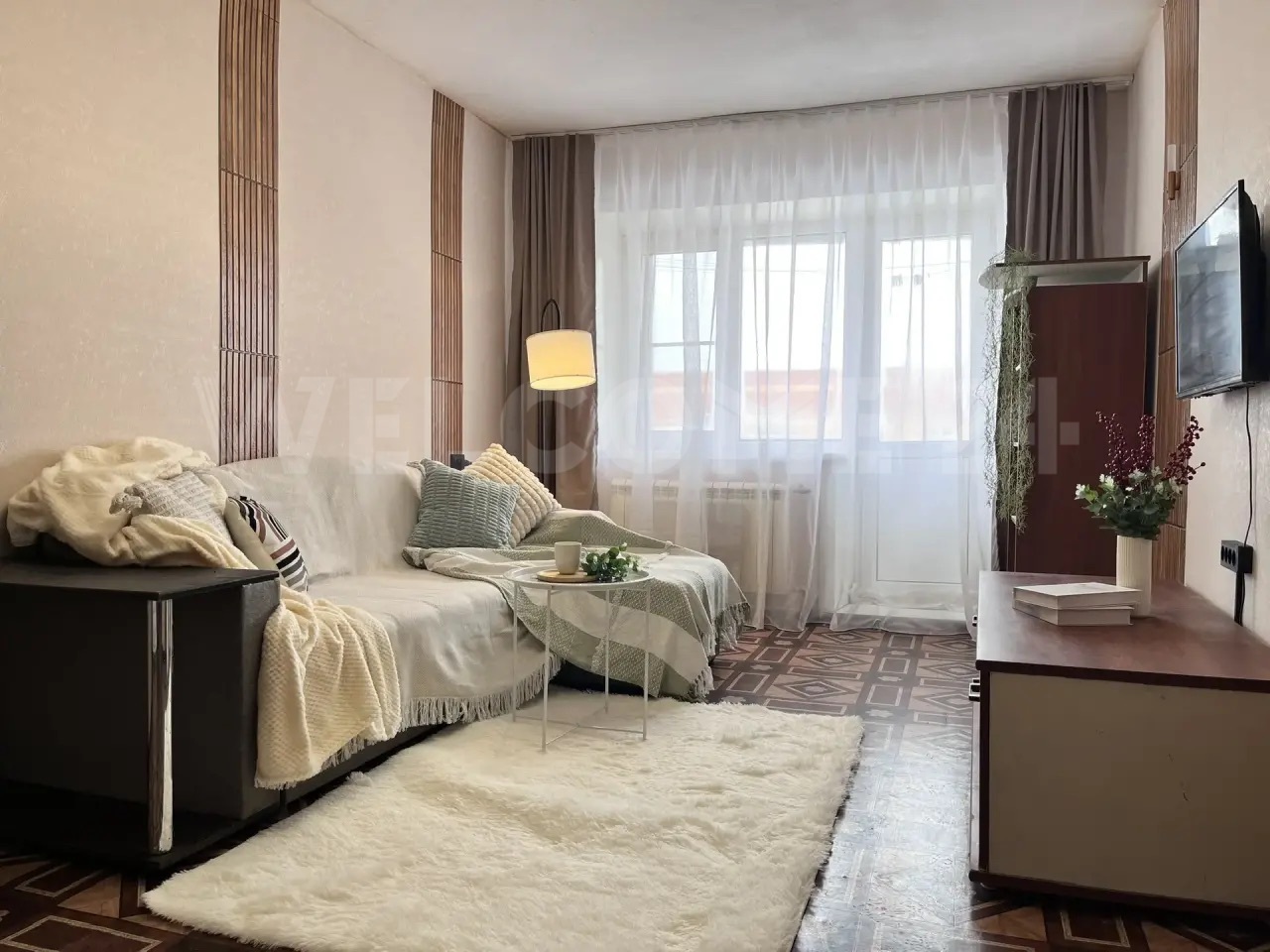 Балкон добавляет дополнительное пространство для отдыха.