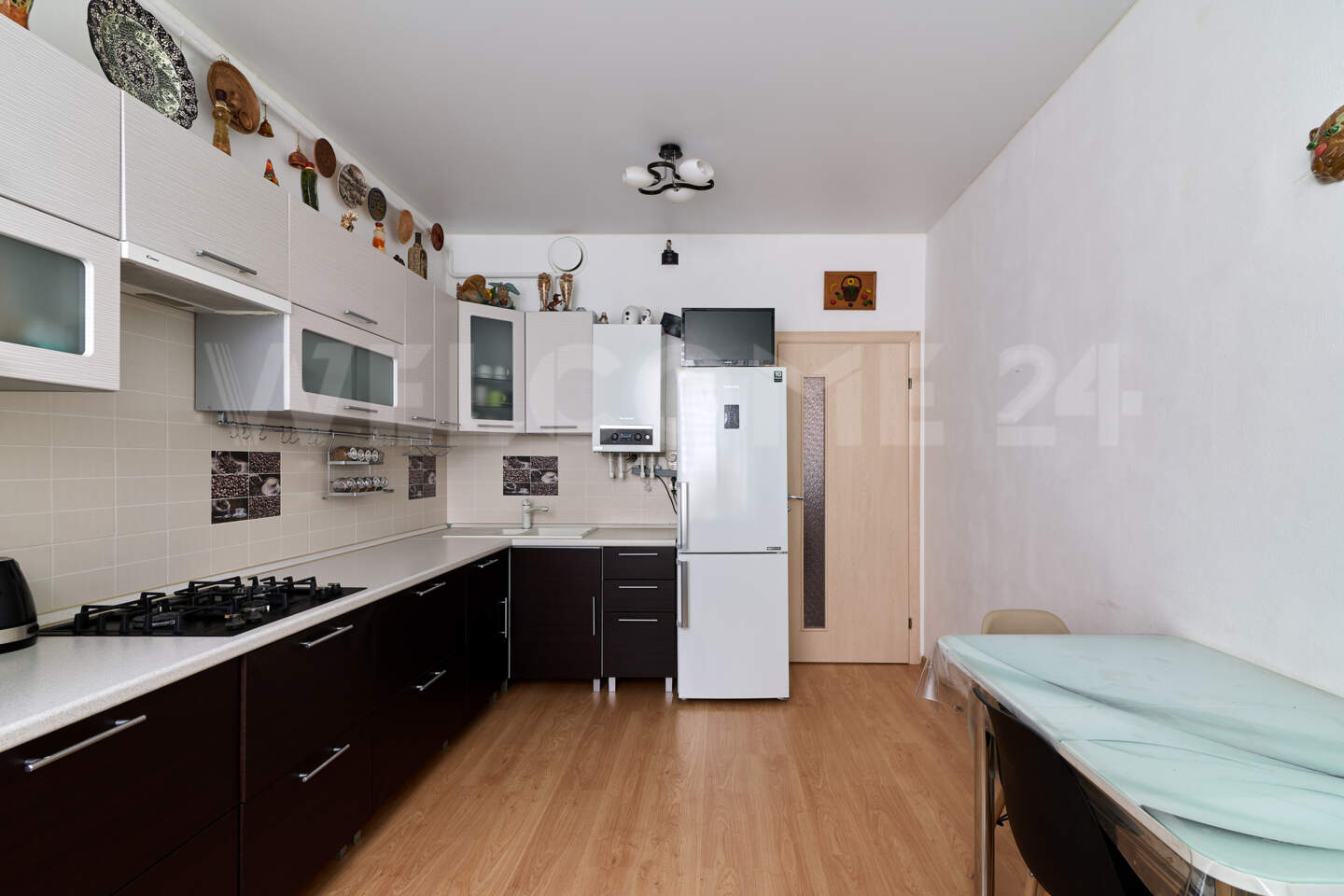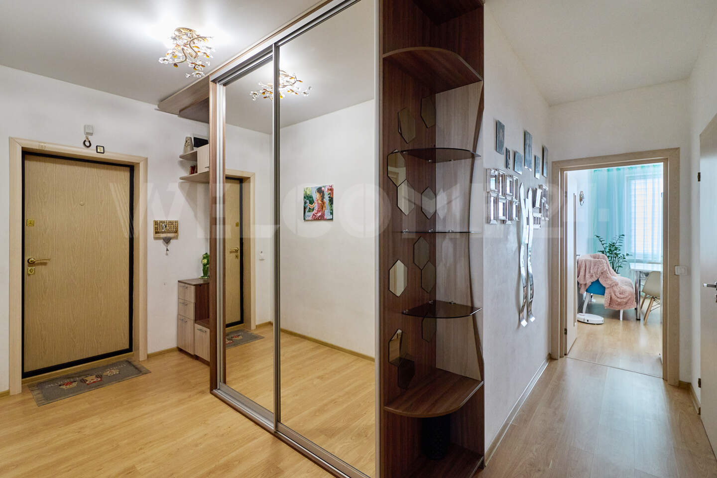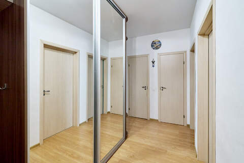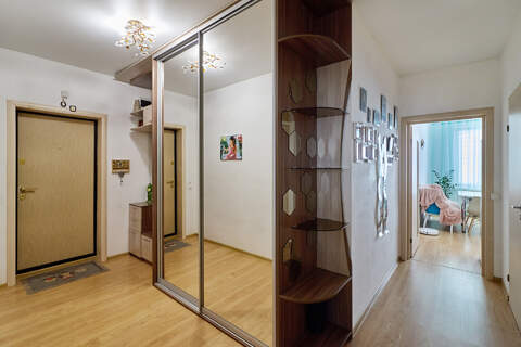 Двухкомнатная квартира 56,5 м2 с ремонтом в светлых тонах. Две изолированные комнаты, кухня 14,5 м2, утепленная лоджия, просторный холл, раздельный санузел, кладовая. Новым собственникам остается мебель: кухонный гарнитур, встроенный шкаф купе в холле, спальный гарнитур, мебель в ванной, и техника.