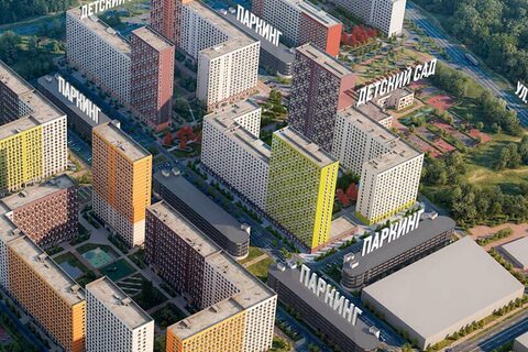 - Три наземных паркинга и охраняемые парковки у подъездов.