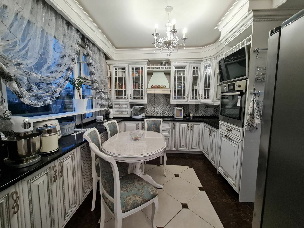 Просторная кухня 10,2 м² — хватит места и для семейных завтраков, и для ужинов с гостями.