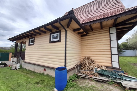 Материал постройки: сруб, брус. Фундамент - ленточный, бетонный. Два этажа, 120 кв.м., балкон и есть возможность пристройки большой веранды. Внутрення отделка из высококачественных материалов.