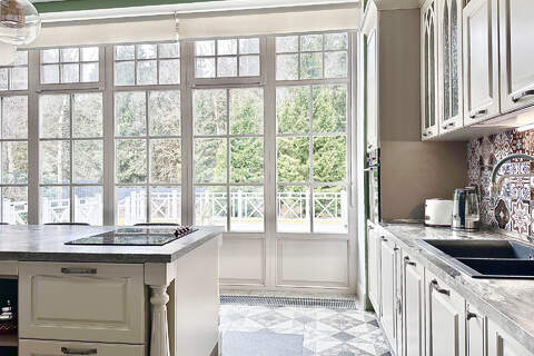Все окна увеличенного формата, выполнены из натуральной лиственницы — это не только эстетика, но и тепло, долговечность и премиальное качество.