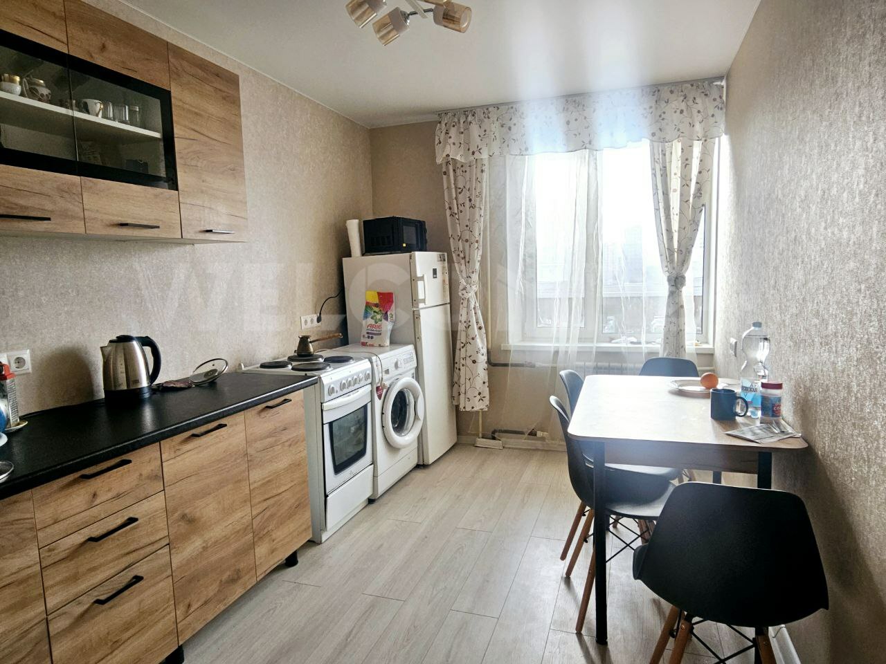 - Оснащение: вся необходимая мебель и техника остаётся — можно заехать сразу и жить.