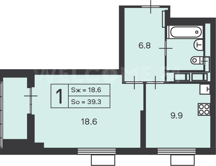 39,3 м²