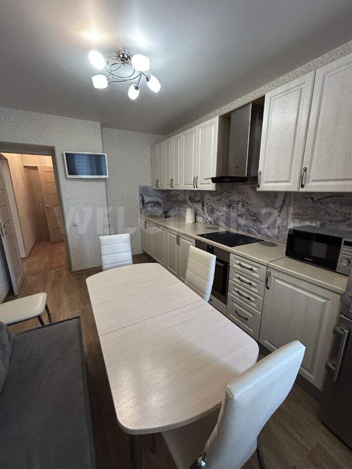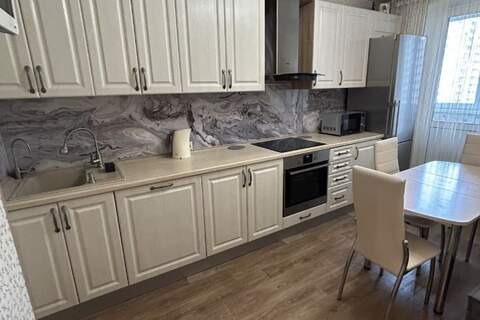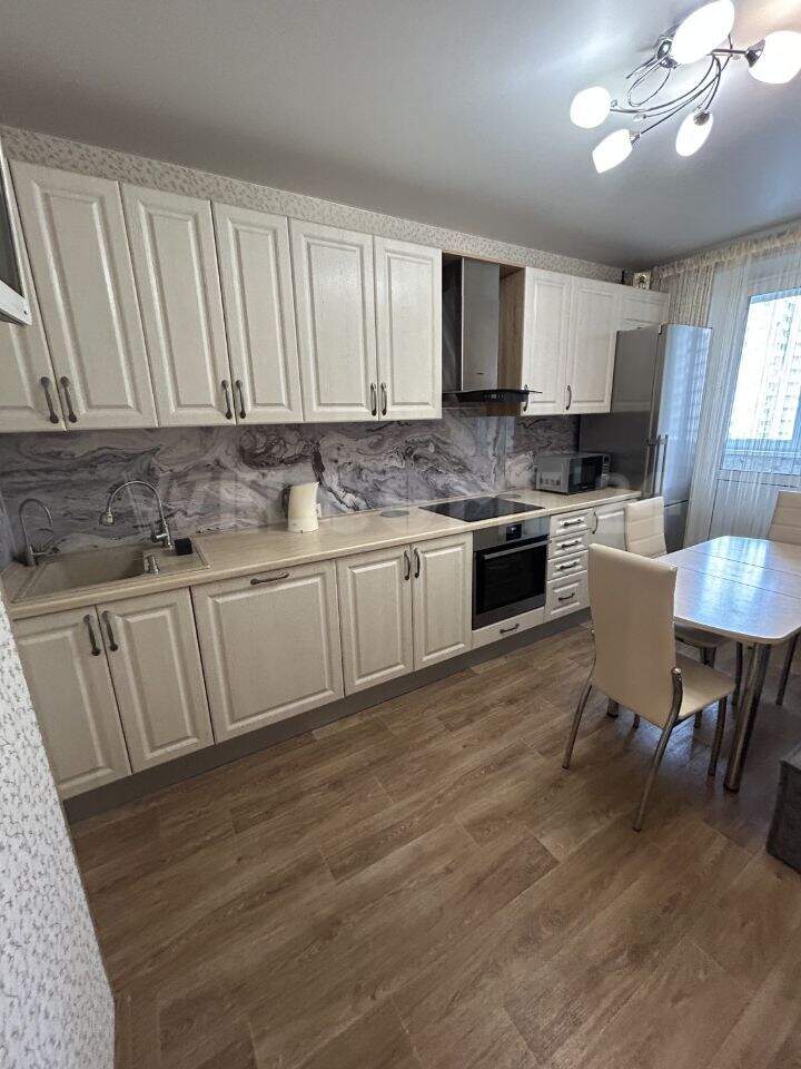 Чистая ,светлая квартира. Ремонт косметический-делали для себя. Окна не от застройщика -меняли и в комнатах и на лоджии. Есть гардеробная комната. Просторный коридор. Большая кухня. Кухня 12м- есть посудомойка. Лоджия на кухни отделана пластиком. Во дворе детский сад. За домом в 3 минутах ходьбы детская поликлиника, МФЦ, ТЦ Окей.