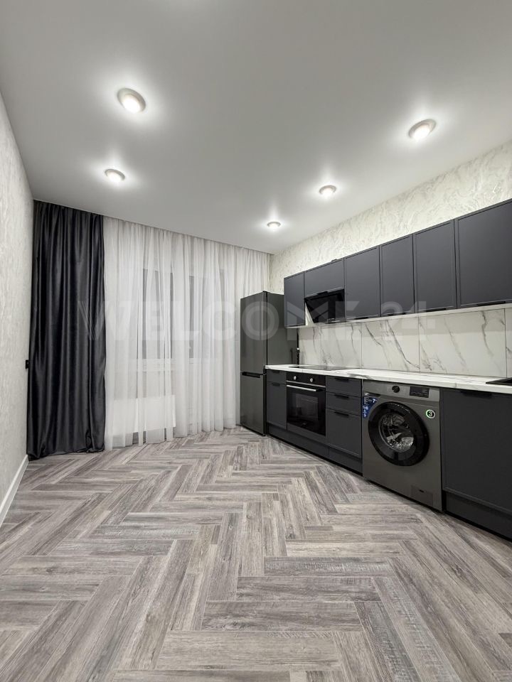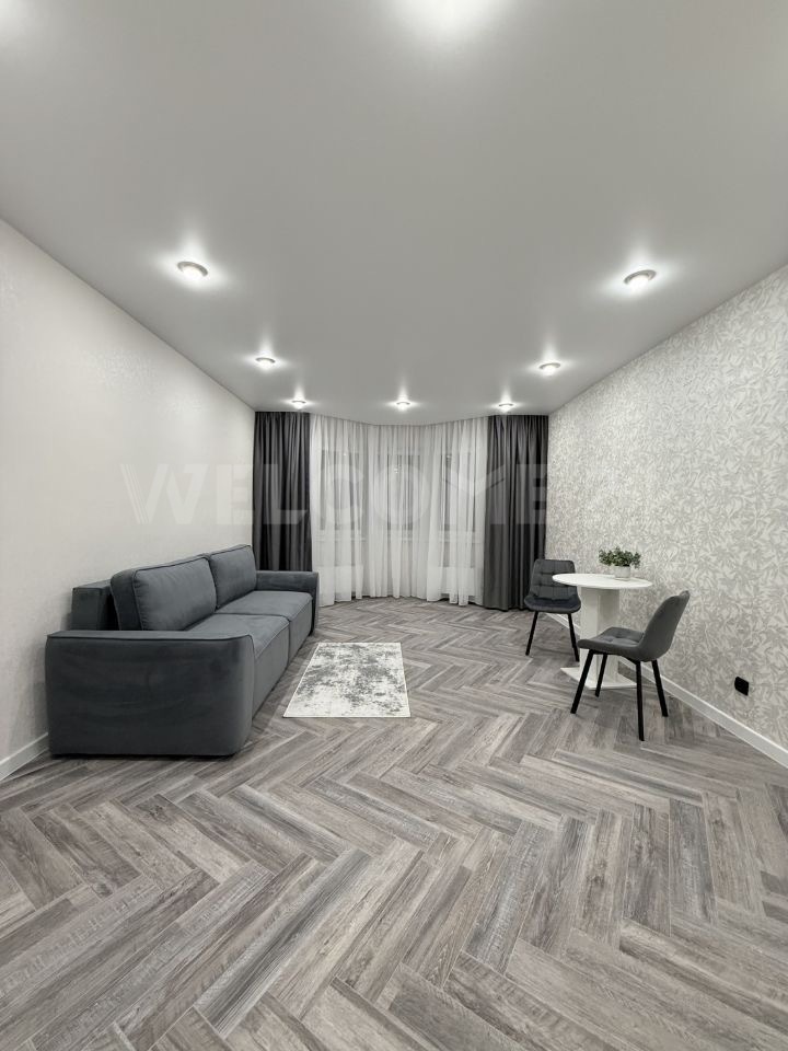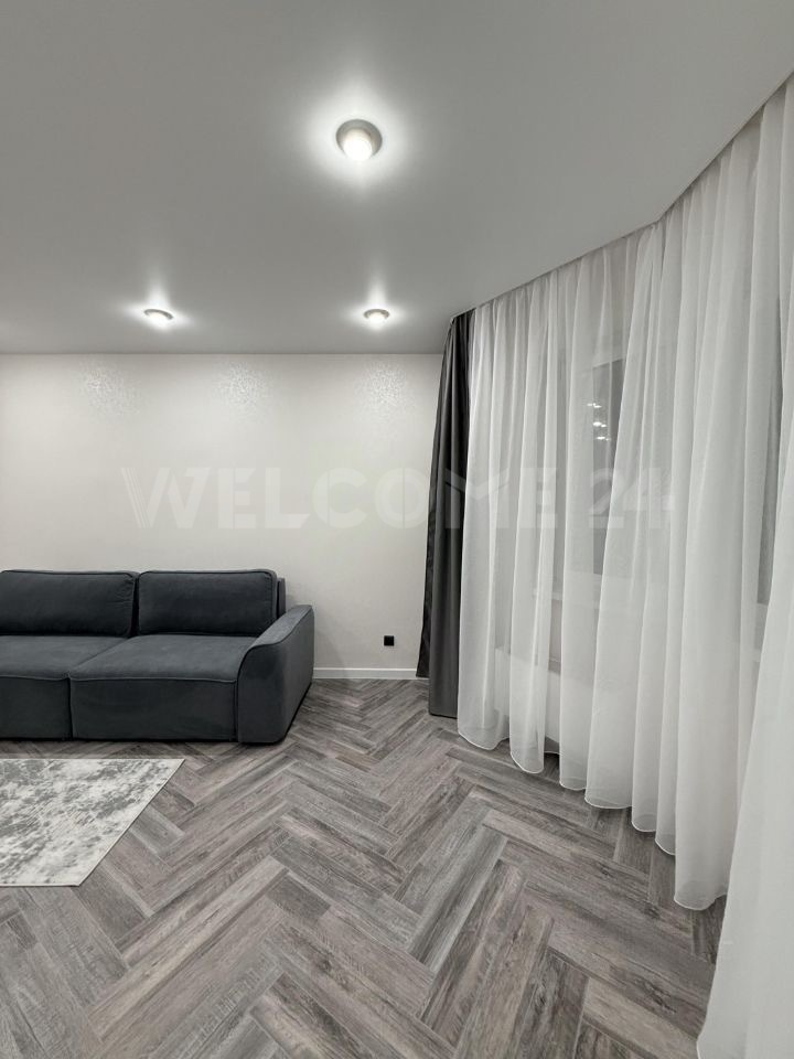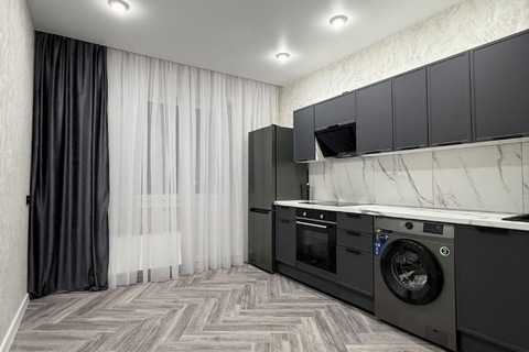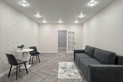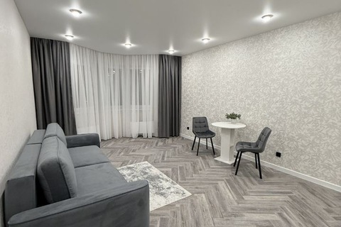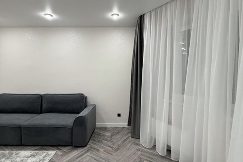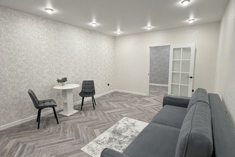 В ней выполнен качественный ремонт, на кухне гарнитур с плитой и духовым шкафом, холодильником. В комнате удобный диван, стол