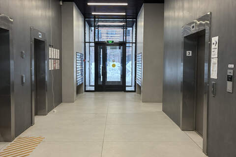 Жилой комплекс новый, с закрытым двором. Сквозной проход: можно выйти как в сторону Москвы-реки, так и в сторону метро. Двор тихий, не «колодец». Наземная парковка бесплатная, всегда есть место с обеих сторон улицы.