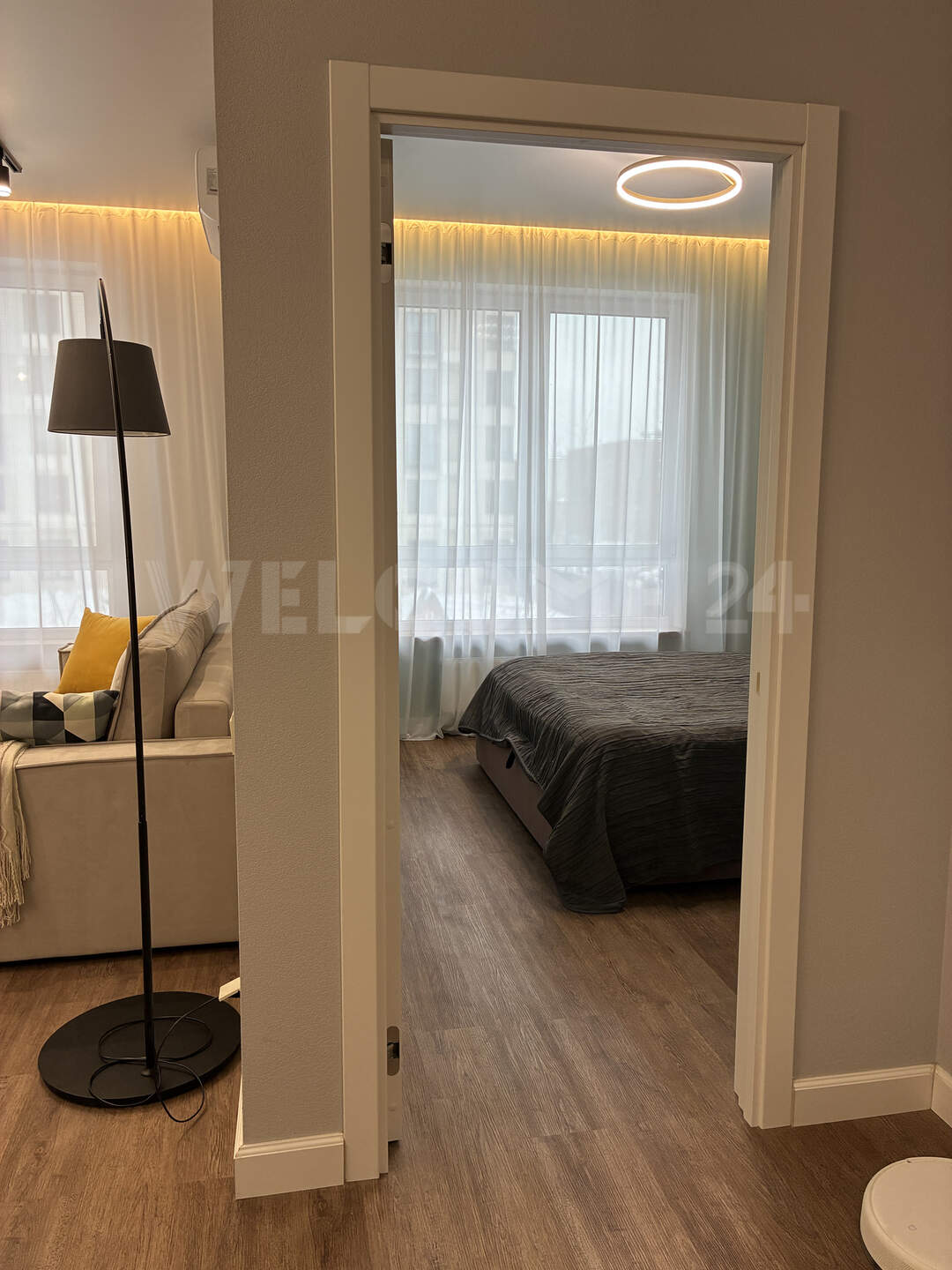 Квартира меблирована, будут еще два шкафа - в прихожей и спальне. Сейчас они в изготовлении по индивидуальному заказу. В остальном - кровать с подъёмным механизмом для хранения, стиральная машина, посудомоечная машина, душевая кабина, кондиционер, робот-пылесос сяоми. Тёплые полы, высокоскоростной интернет 200 Мбит/с. Планировка идеально подходит для комфортного проживания одного или двух человек.