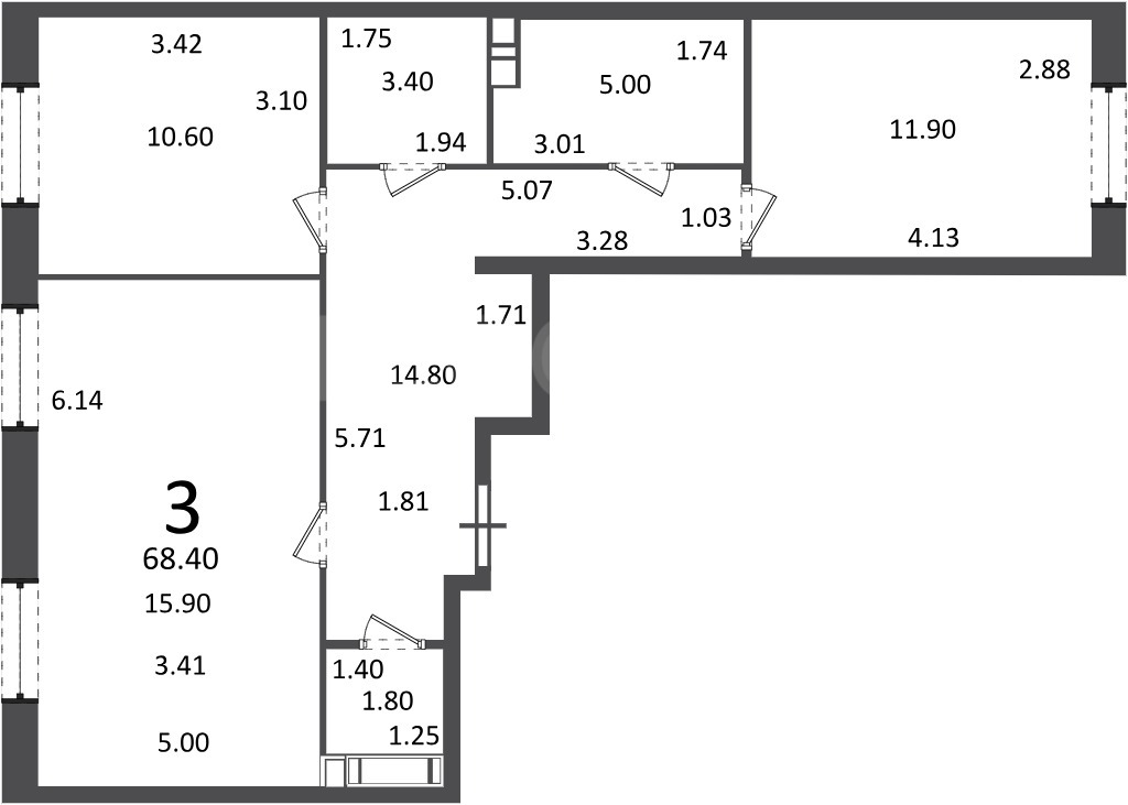 68,4 м²