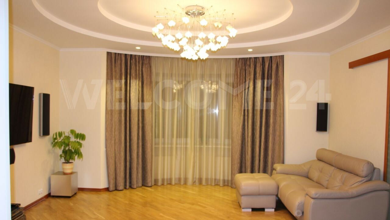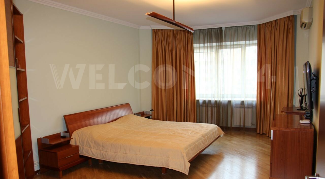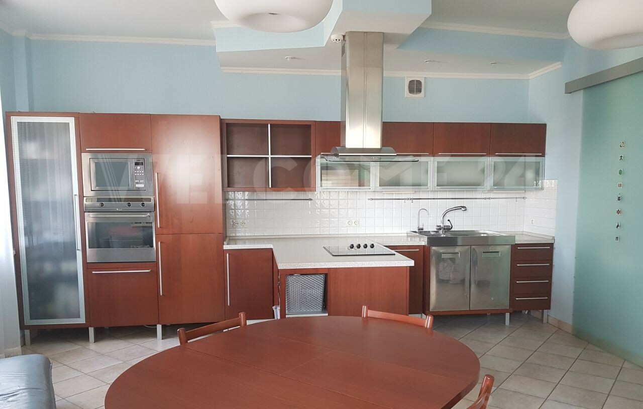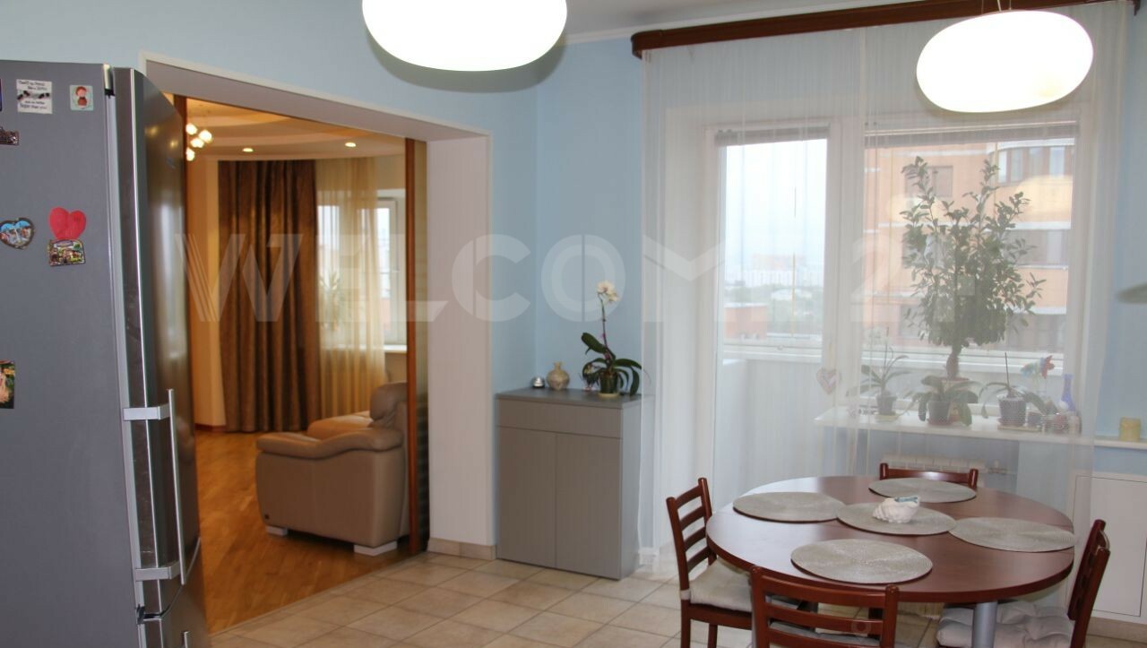 Квартира четырехкомнатная, площадью 172 кв. м. (без учета площади балкона и лоджии). Три раздельные спальни площадью 16 кв. м., 22 кв.м и 28 кв.м. гостиная 29 кв. м., два санузла (15 и 4 кв.м). В одной из спален открытый не застекленный балкон площадью 5,5 кв.м.) В большом санузле гидромассажная ванна и сауна. Большая Кухня (26 м2) с выходом на застекленную лоджию, площадью 4,5 кв. м. Квартира оснащена всей необходимой техникой - бойлер, посудомойка, стиральная машина, кондиционер. Вся встроенная мебель остается покупателю, остальное по согласованию.