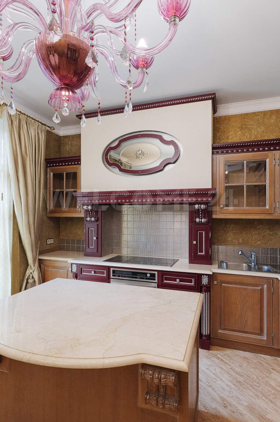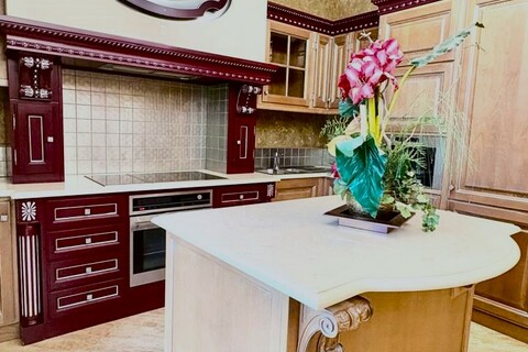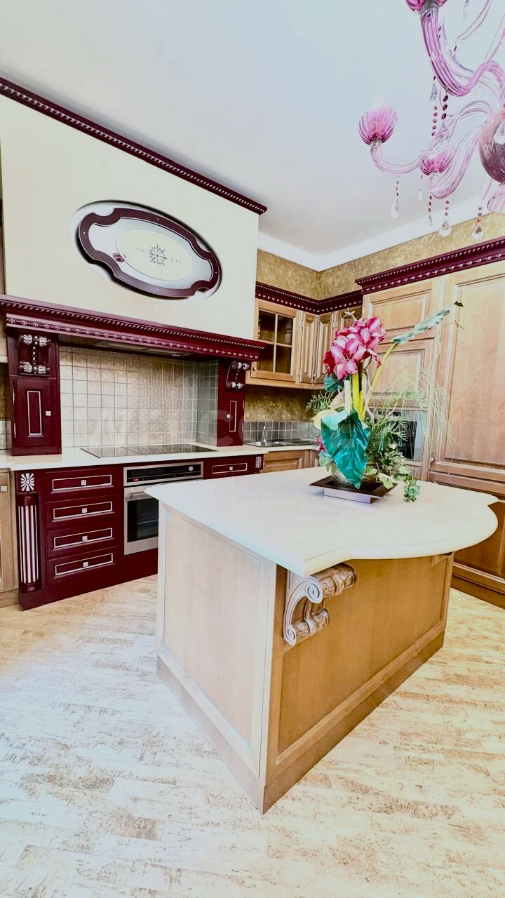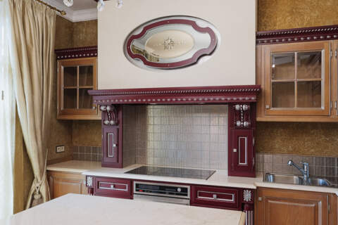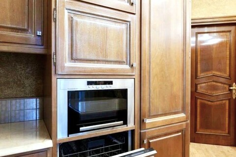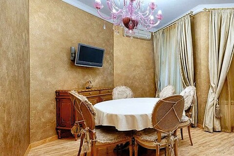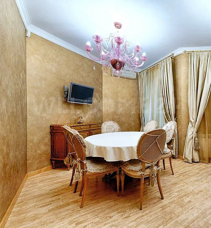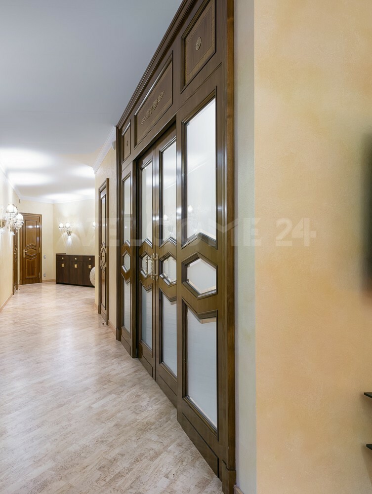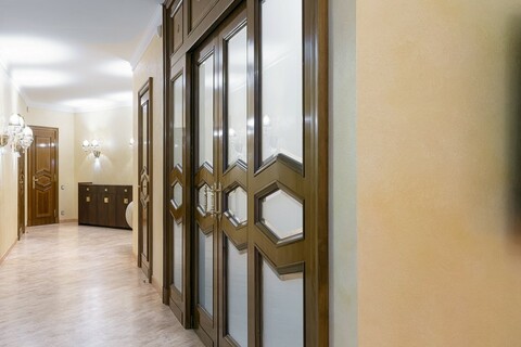 - Роскошь и уют создаются благодаря использованию ценных пород дерева и мебели ручной работы. Напольное покрытие из карельской березы, двери из массива американского ореха, а также изысканная венецианская штукатурка на стенах придают интерьеру особенное тепло и благородство. Каждая деталь, от мебели итальянского производства до элементов драпировки, тщательно подобрана и создает неповторимую атмосферу уюта и респектабельности.
