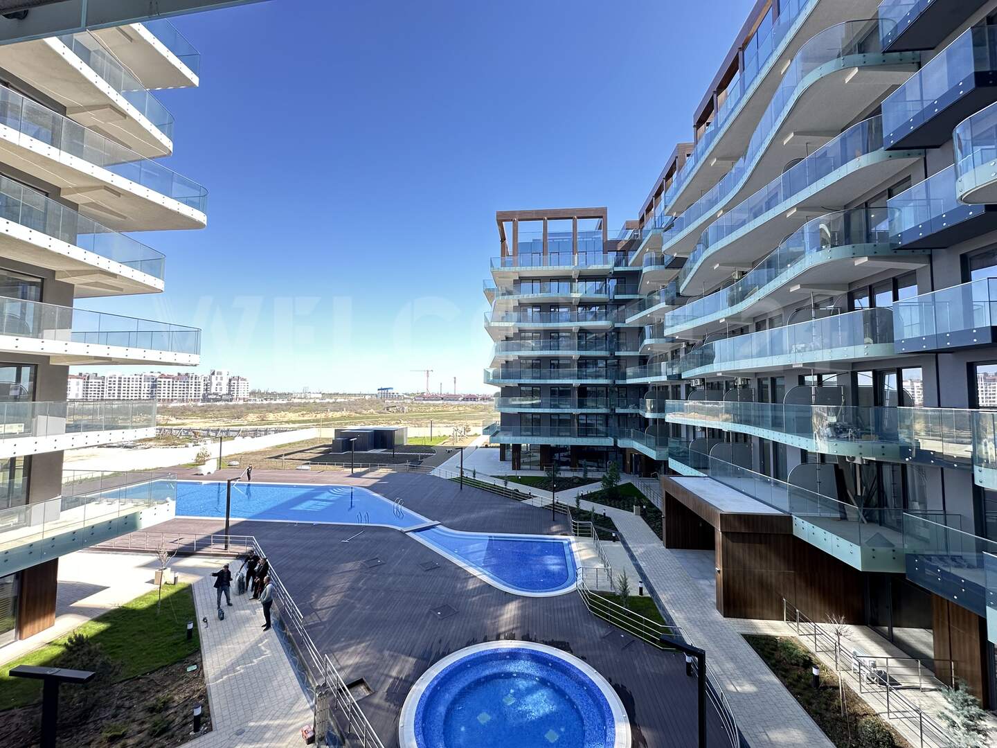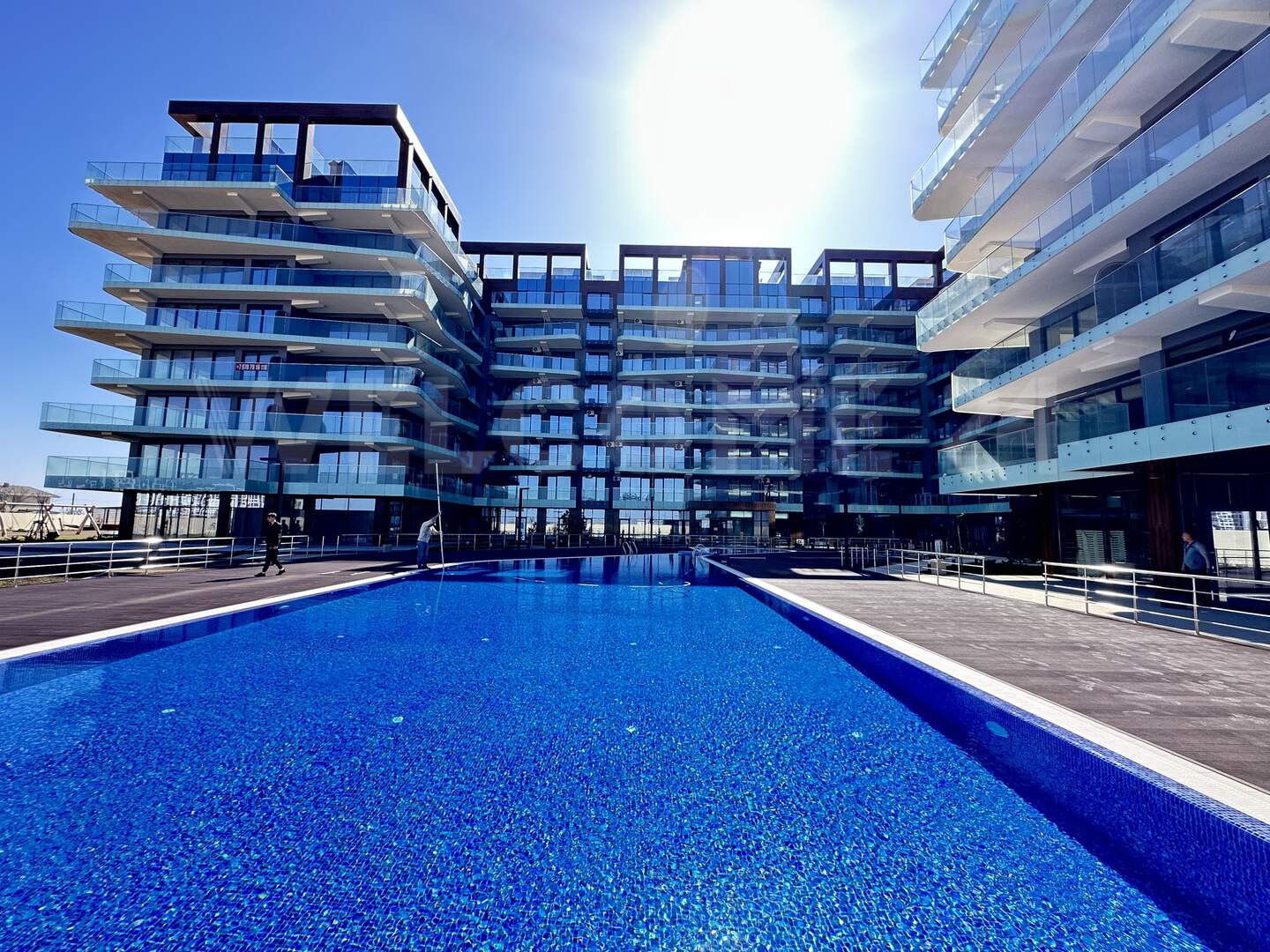 На территории комплекса предусмотрены:Современный пляж — в минуте ходьбы